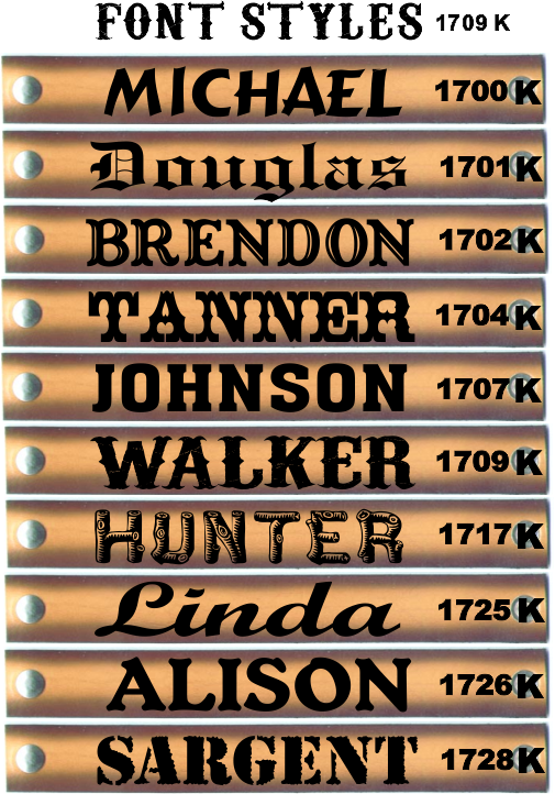 1 1/4" wide Name Belt.  Space left in center back for child's name.  Children's belts are made of quality, top grain 7/8oz  tooling leather and proudly hand finished with our exclusive sixteen step finishing process.  Gavere Leather belts are made in USA.