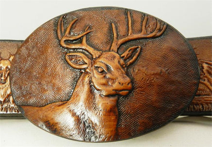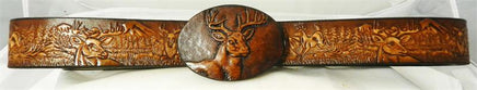 Looking for the perfect belt for the hunter or outdoorsmanor woman in your life? We have a selection of handmade embossed belt and bucklesets that will truly astonish, making the perfect gift for others, or, foryourself! This deer scene belt and matching buckle are perfect for those thathave a love for the outdoors.