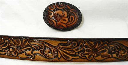 1 1/2" Leather Western Carved designed belt and matching western leather buckle