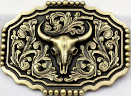 Fits 1 1/2" Belt. Steer head buckle has western floral background and decorative edge