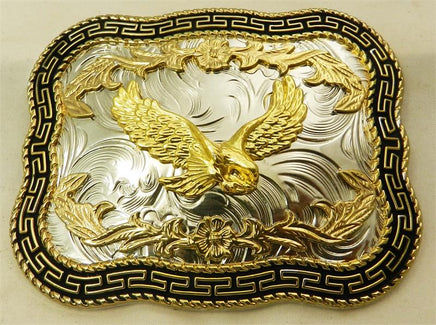 Large 3" x 4" Eagle Buckle with black decorative edge Buckle fits 1 1/2" Belt.