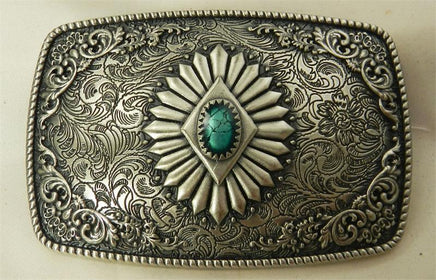 Buckle fits 1 1/2" Belt. Beautiful western styled buckle has scrolling and stone in center