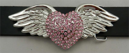 1 1/2" beautiful ladies buckle. Silver wings with pink rhinestones in heart